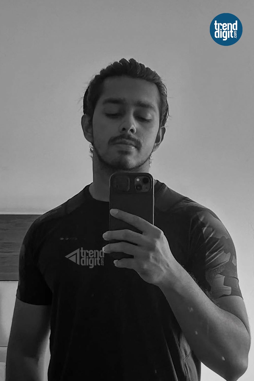 Divya Saravanan radiates confidence in a red lehenga, styled with statement jewellery and dramatic studio lighting that enhances the flowing silhouette.