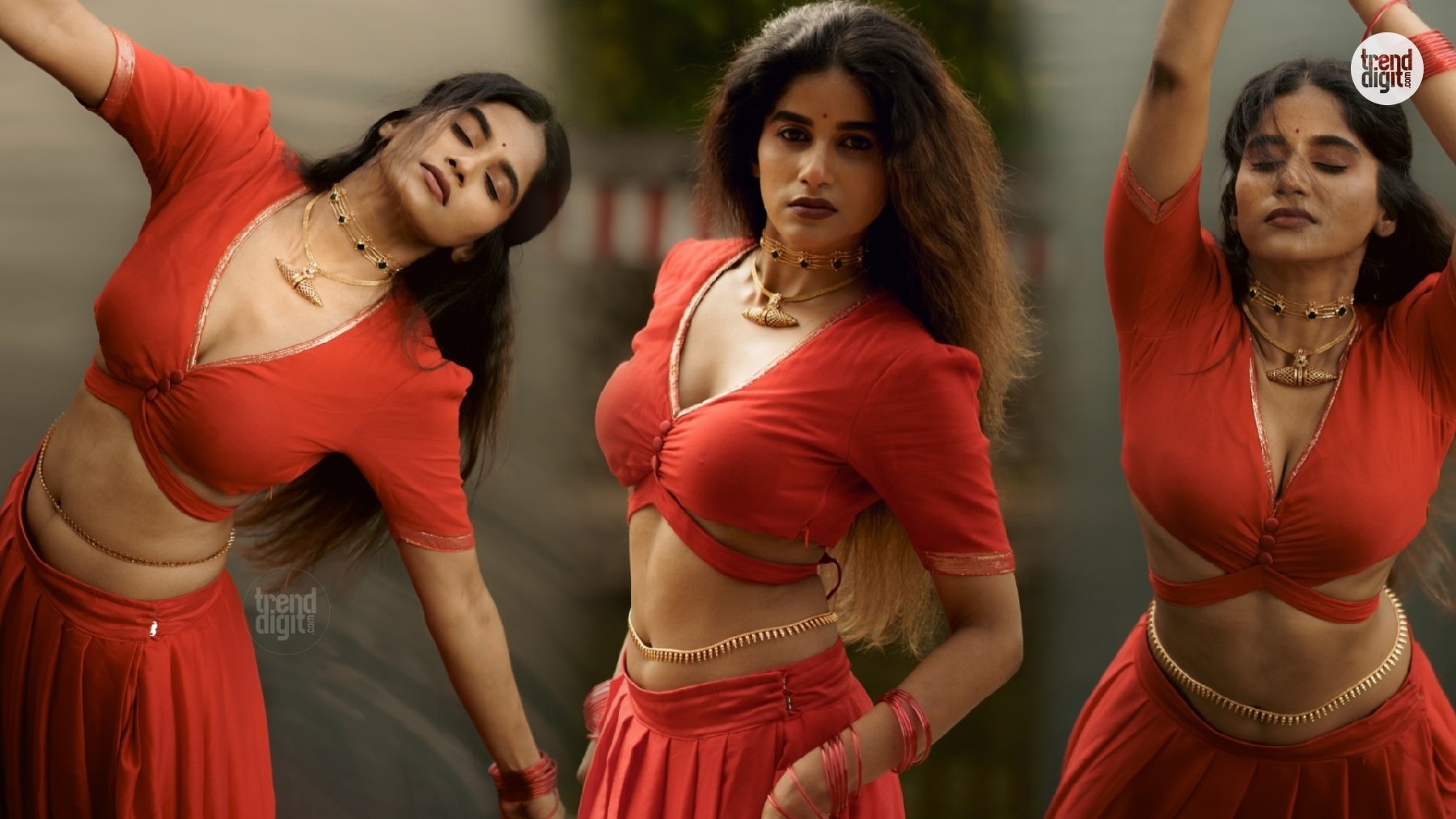 Aadhirai Soundararajan Red Lehenga Set – Graceful Traditional Outdoor Look