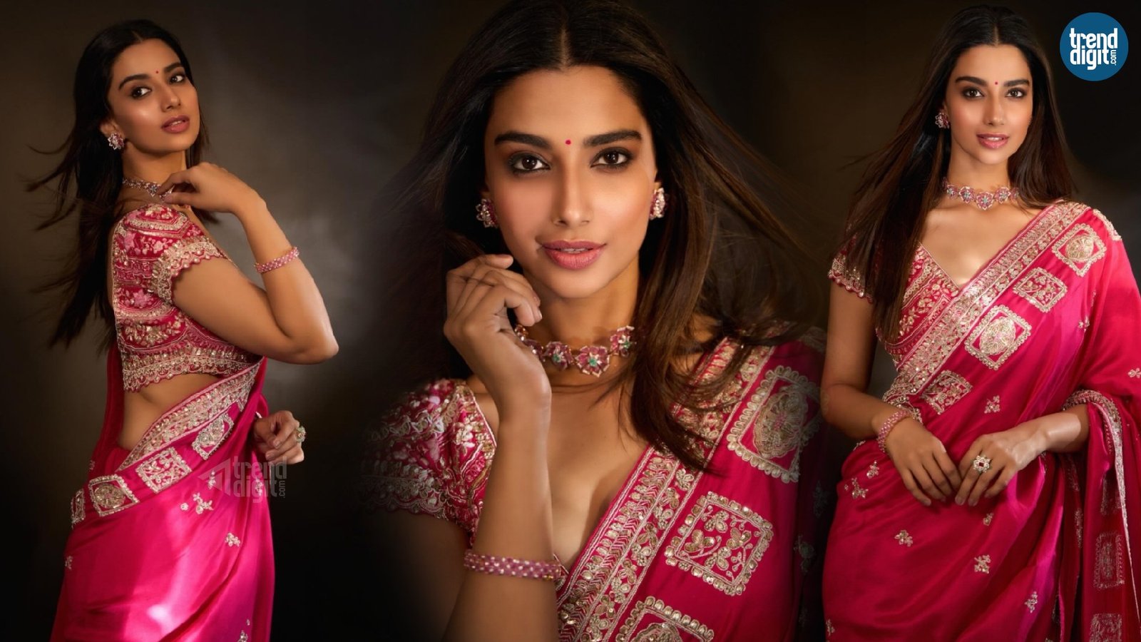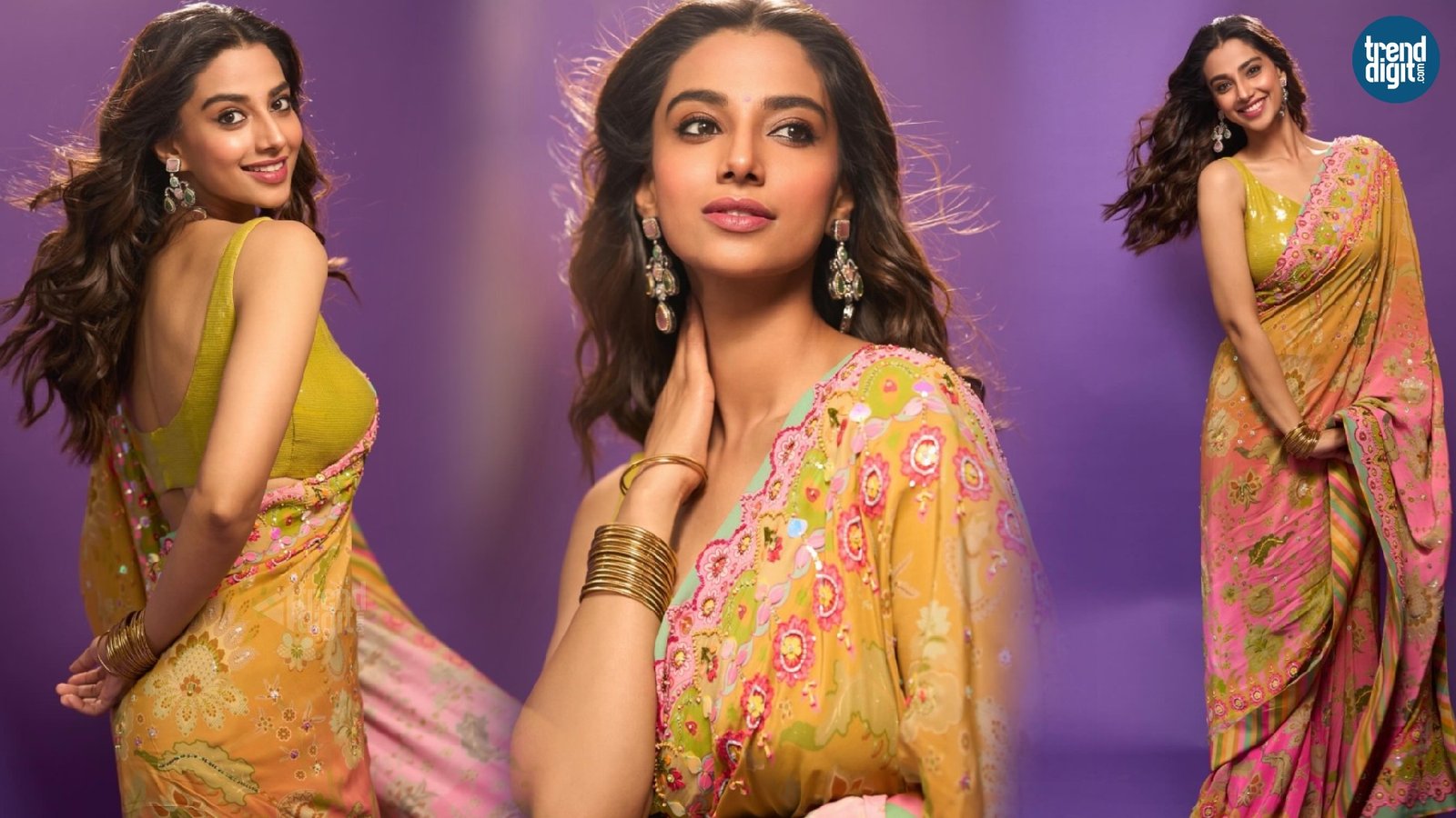 Meenakshi Chaudhary Pastel Saree Look – Playful Studio Styling