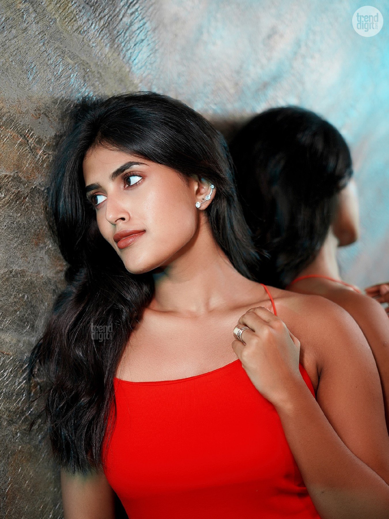 Divya Saravanan is a Chennai-based model and public figure known for adaptable fashion aesthetics. This photoshoot is captured indoors against a dark draped backdrop using focused studio lighting. The setting highlights clean lines and a minimal silhouette.