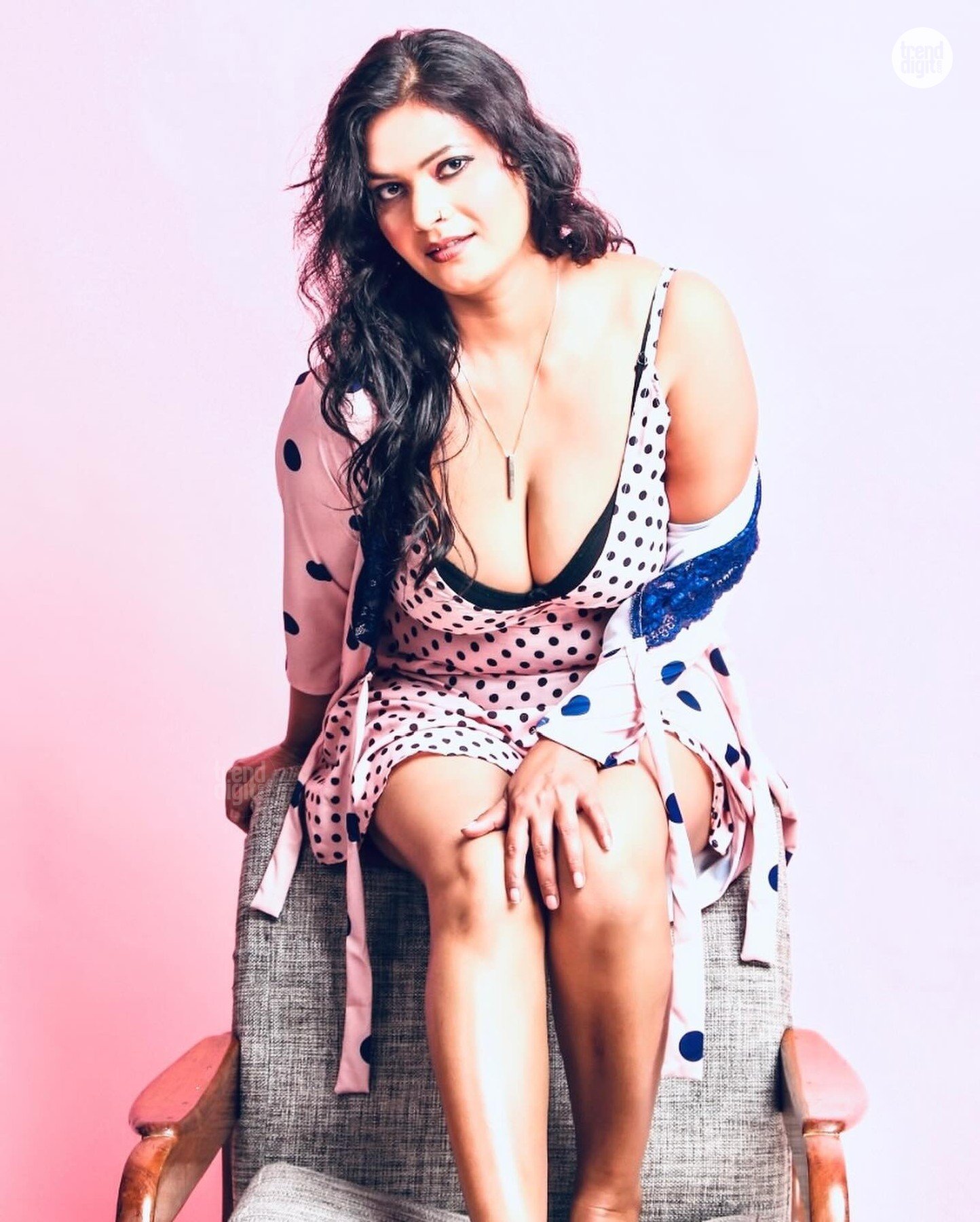 Malvika Tomar is an Indian web series actress, model, and influencer based in India. This photoshoot featuring the Malvika Tomar Pink Polka Dot Mini Dress is captured in a studio setting against a pastel pink backdrop using soft, even lighting. The clean background keeps the focus on silhouette and texture.
