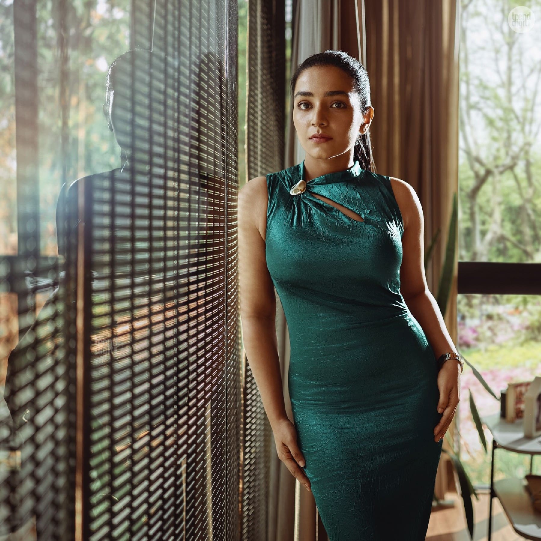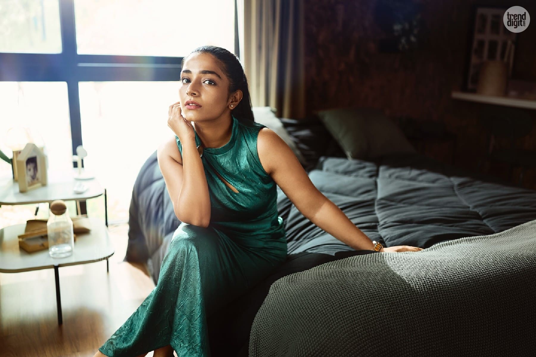Rajisha Vijayan Green Textured Dress – Elegant Indoor Editorial