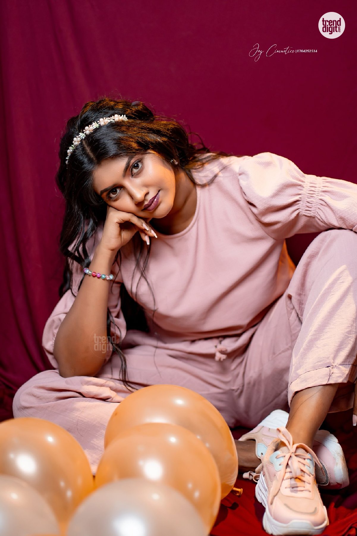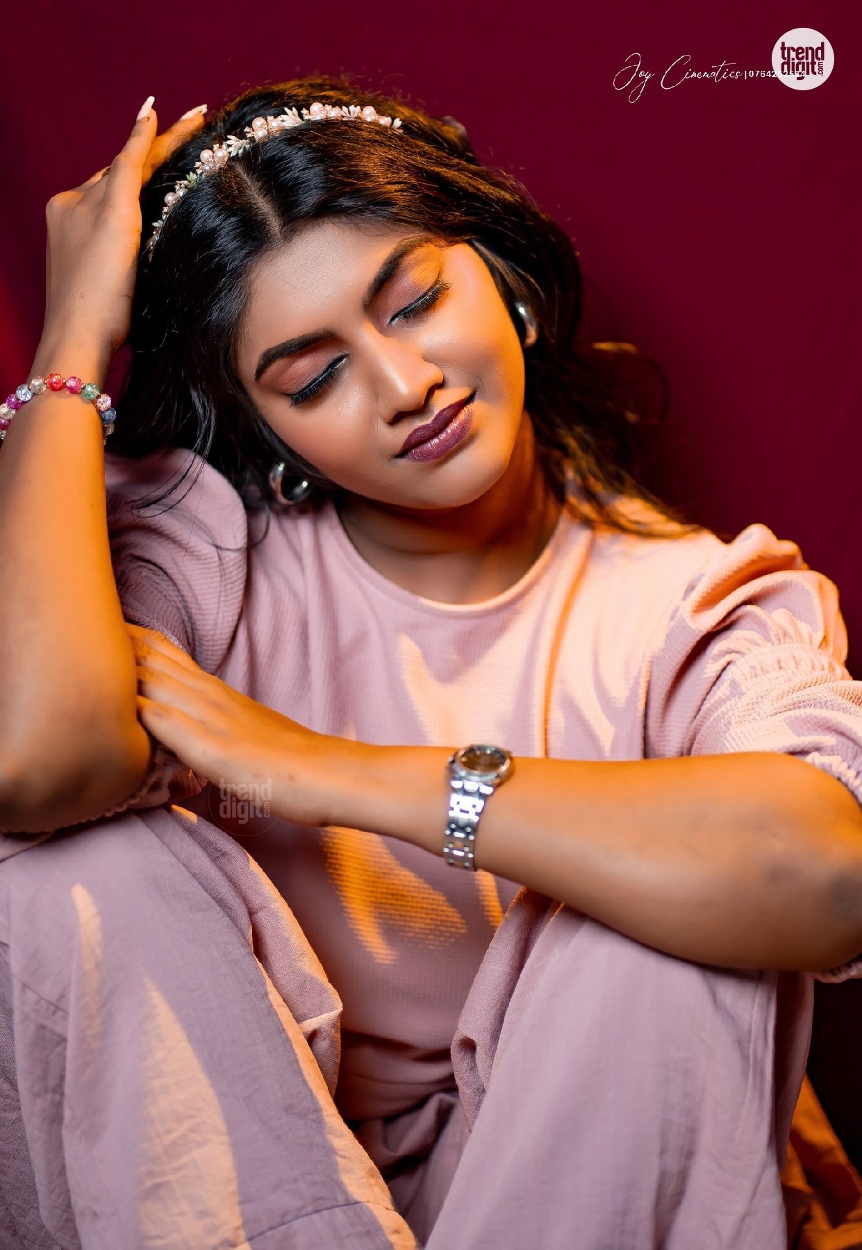 Rinoja Santhirakumar is known as a Sri Lankan model and digital creator associated with portrait and lifestyle fashion visuals. This Rinoja Santhirakumar Pink Casual Set feature highlights her presence in studio-based shoots with a focus on clean styling and expressive visuals.