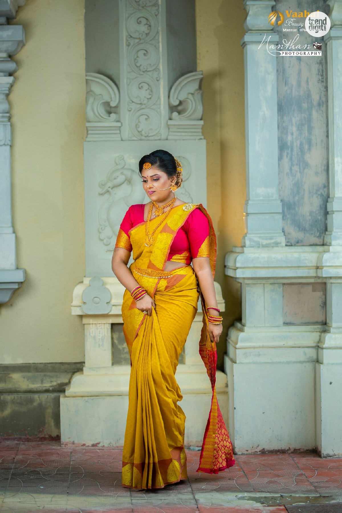 Sasha Grace is a Sri Lankan Tamil actress, model, and digital creator who frequently appears in fashion editorials and traditional styling photoshoots. In this shoot featuring the Sasha Grace Yellow Silk Saree, the concept blends cultural elegance with modern portrait photography in a beautiful outdoor setting.