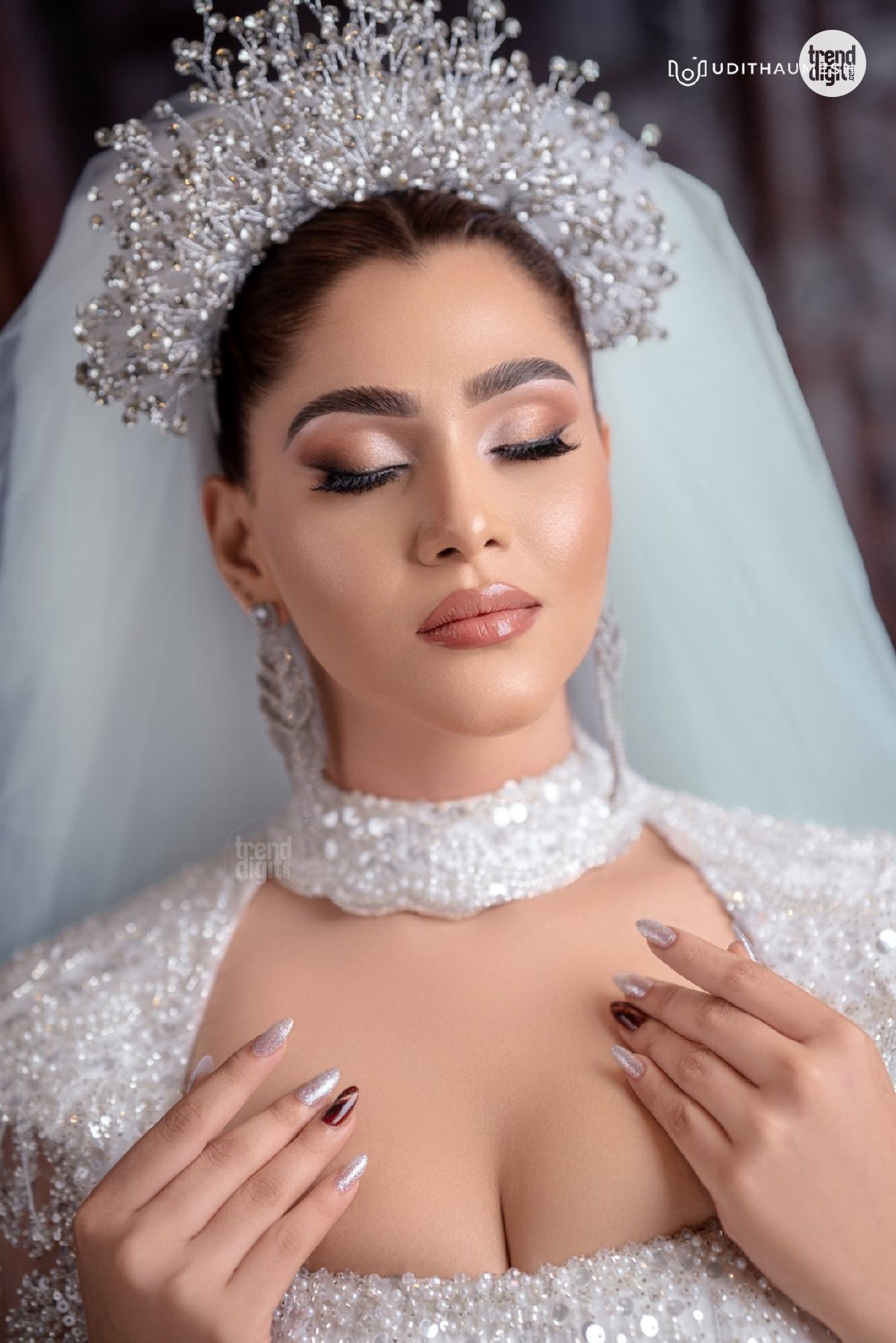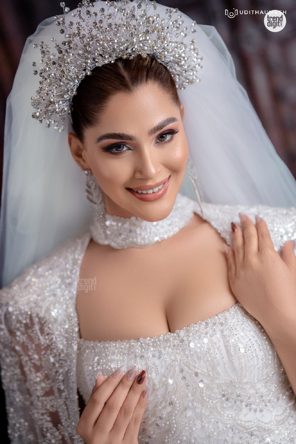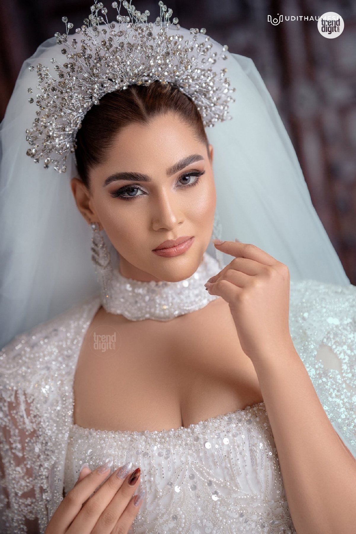 Taniya Abeysundara White Bridal Gown – Elegant Bridal Glam in Studio Portraits