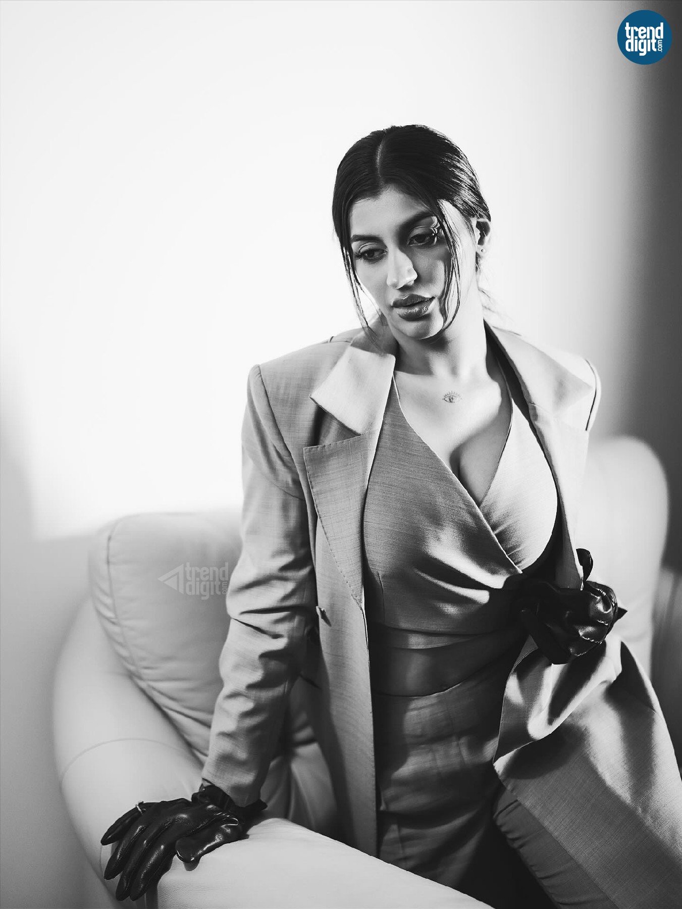 This Yashika Aannand Grey Co-Ord Suit Look reflects a shift toward modern power dressing, combining tailored fashion with contemporary styling choices suitable for editorial or high-fashion features.