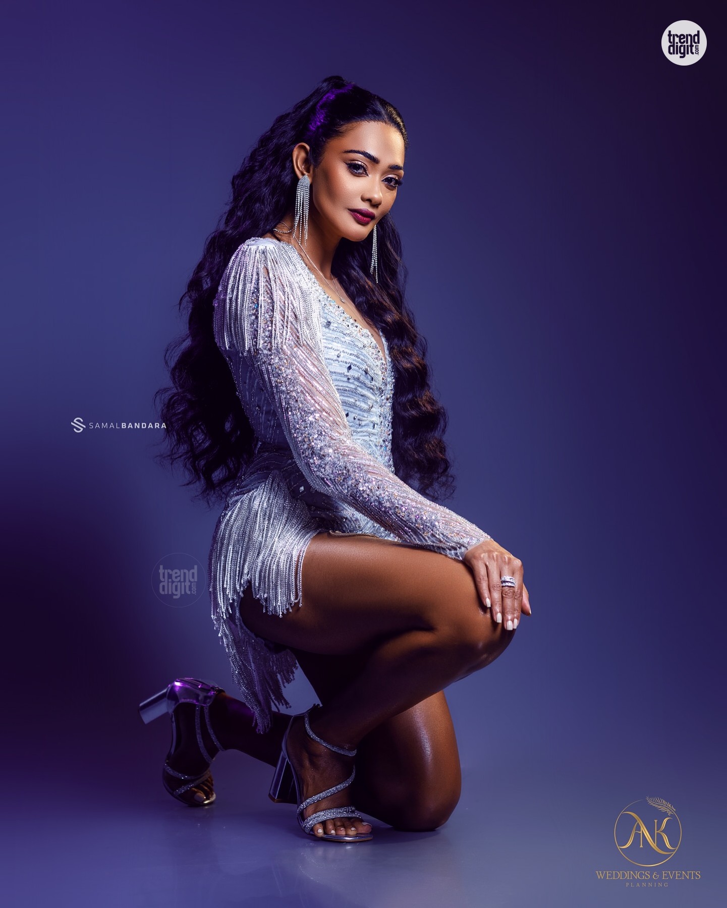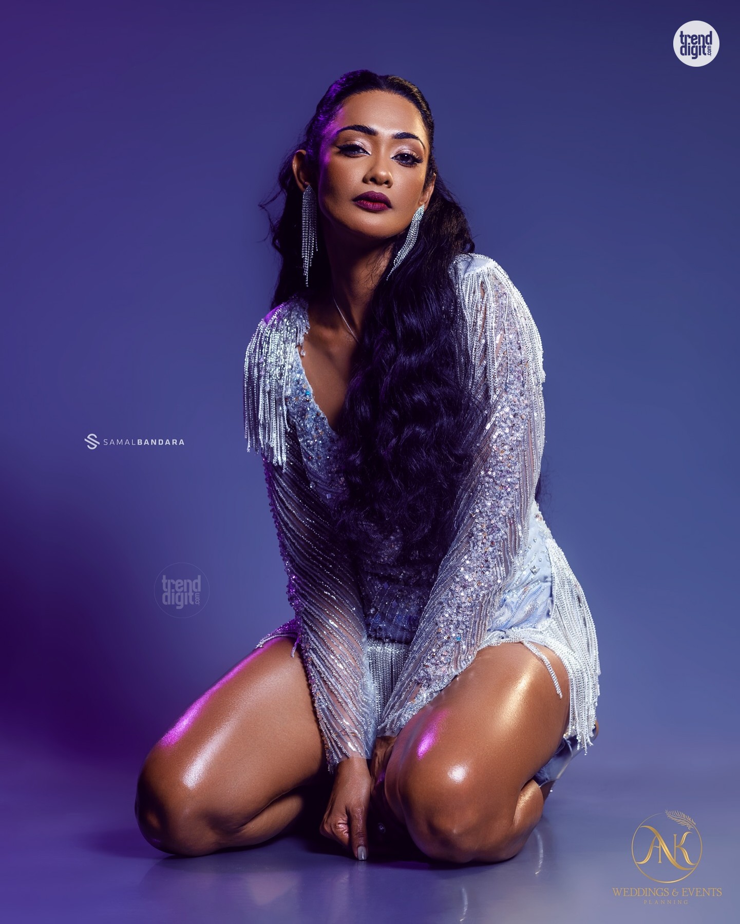 Sri Lankan actress and television personality Yureni Gunasekara appears in a striking fashion photoshoot captured by photographer Samal Bandara. The shoot highlights Yureni’s confident presence and modern fashion styling in a clean studio setup.